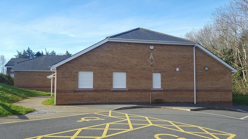 Photo shows the “New” Bangor Masonic hall, Parc Menai, Bangor